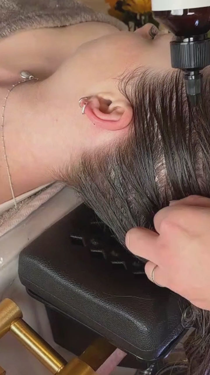 Cet accessoire raffiné allie l’élégance du bois et la finesse du métal pour un massage stimulant et relaxant, essentiel à tout soin Head Spa.